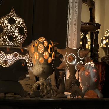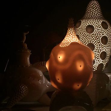 "My ceramic lamps are made from porcelain and inspired by the play of light that surrounds us. Each one is hand-crafted and one-of-a-kind. The forms are shaped on the potter's wheel with the thinnest possible thickness, ensuring maximum light transparency. Soft, free-formed porcelain is then textured and crafted to create lamps with unique shapes and surfaces. Before being fired at 1260°C, each lamp is treated with a transparent glaze which further enhances its translucency. The work strives to find the perfect balance between natural form and a living one.”